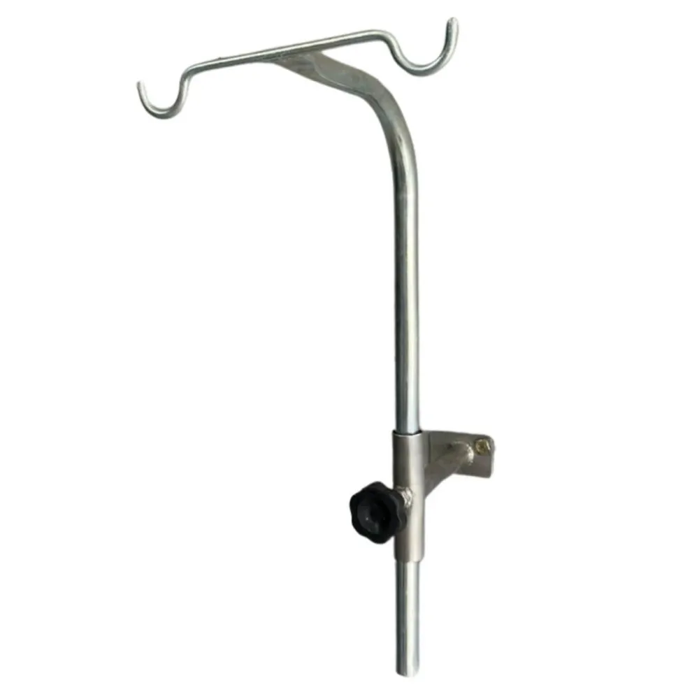 Suporte de soro de parede fabricado inteiramente em ferro zincado ou aço inoxidável, acompanha 1 borboleta para regulagem, com capacidade p/ 02 frascos.